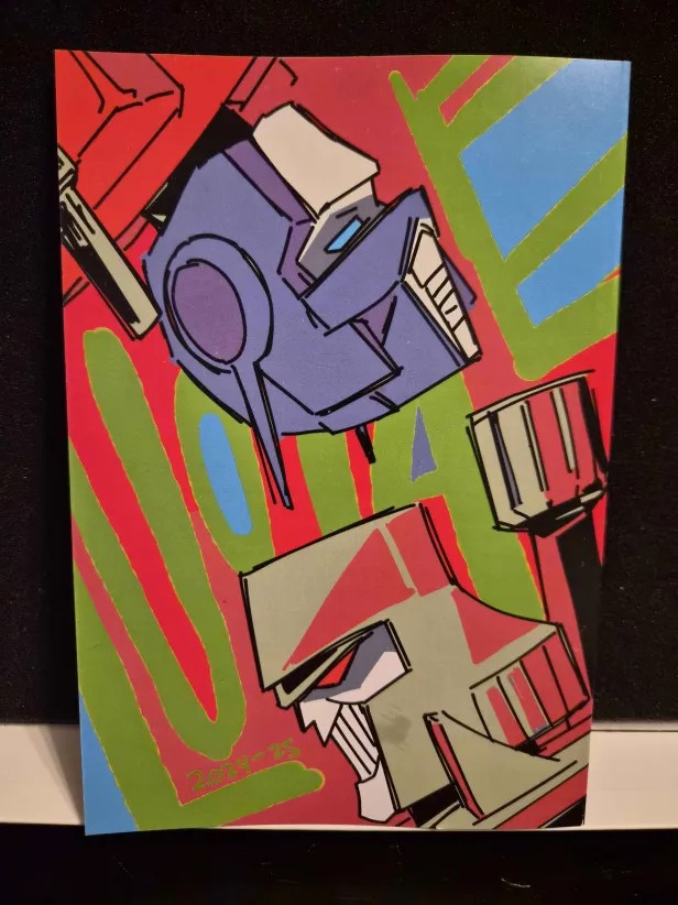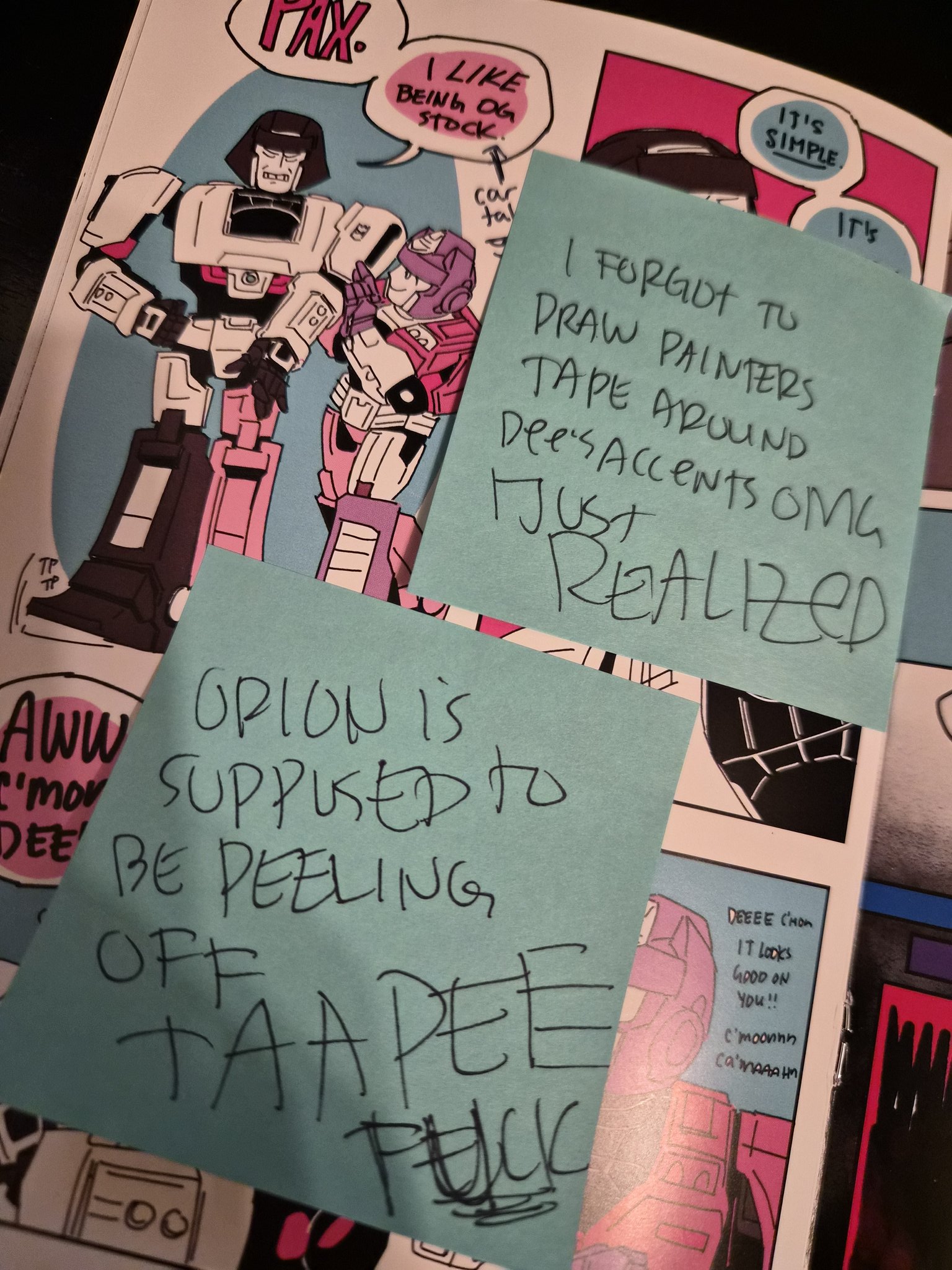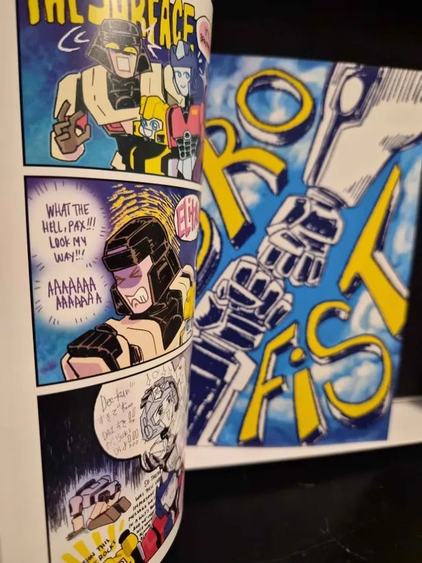 A TF Fanbook filled with all my hopes and dreams... Like how Orion Pax filled a hole in D-16's... heart area. With his fist. OKay. And how two bros(?) from alternate universes found kinship(?) thru their lack of arm (singular). Mostly featuring TFO iterations, with some vaguely G1 and skyboundish guys too.